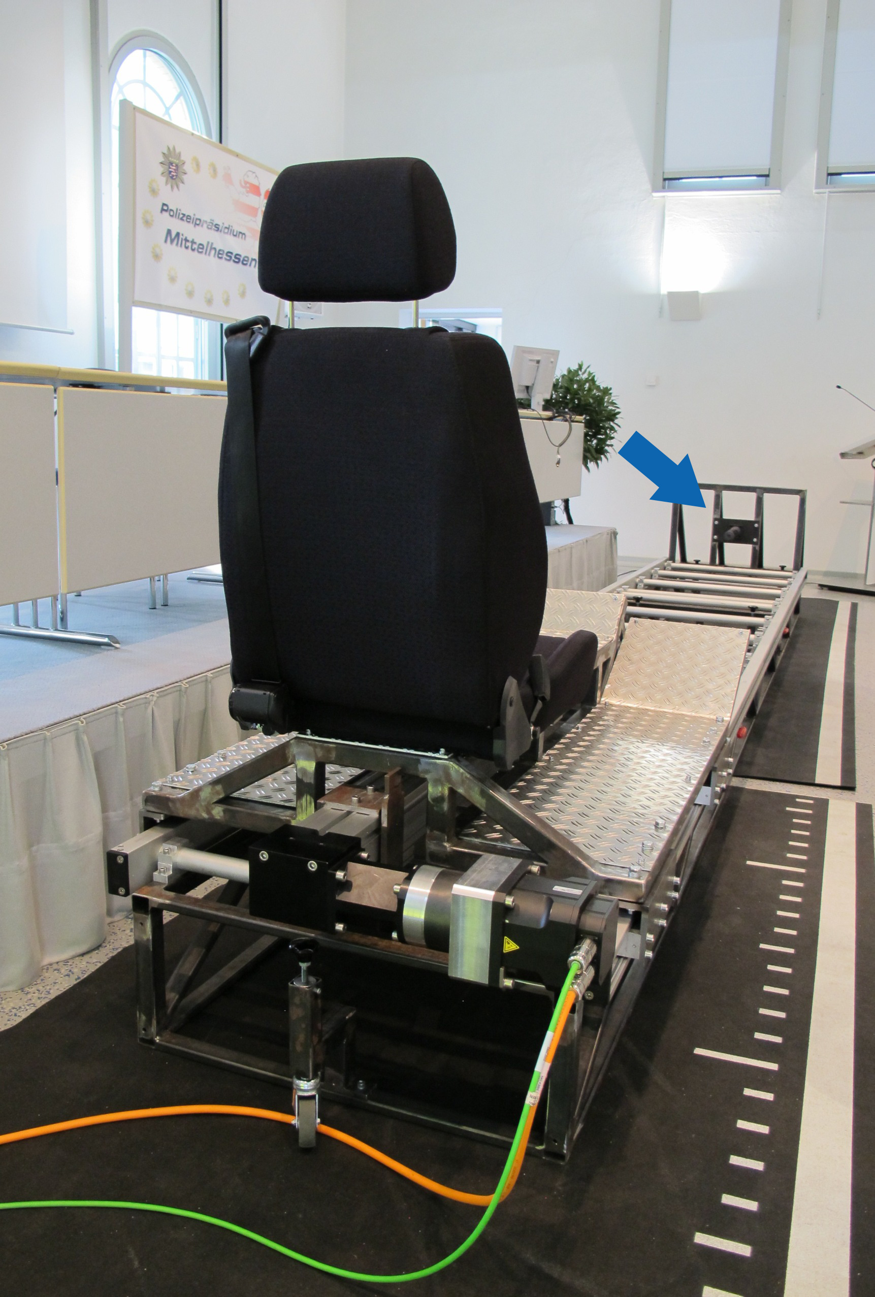 Das Polizeipräsidium Mittelhessen hat mit Hilfe der ACE Stoßdämpfer GmbH einen Unfallsimulator entwickelt, um die Gurtanlegequote im Straßenverkehr deutlich zu erhöhen. Der transportable Simulator zeigt eindrucksvoll, dass kleinste Aufprallgeschwindigkeiten auch angeschnallt zu enormen Kräften führen und ohne Gurt ernste Verletzungen drohen. Um bei unterschiedlichen Geschwindigkeiten und bewegten Massen die Simulatorpassagiere und die Endlagen der Konstruktion zu schützen, kommen die einstellbaren Industriestoßdämpfer MA64150 von ACE zum Einsatz. Dies ist der größte einstellbare Dämpfer aus der MAGNUM Produktfamilie MA33 bis MA64. Stärkere Sonderanfertigungen sind jederzeit möglich.
