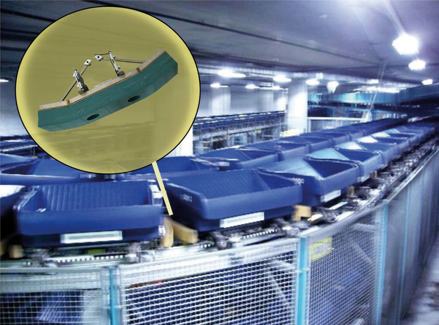 Geschwindigkeitsoptimierte Paket-Sortieranlagen Für eine besonders platzsparende Konstruktion ihrer neuartigen Split Tray Sorter hat das niederländische Unternehmen Equinox MHE die Kurvenradien reduziert. Zum Aufrechterhalten des hohen Tempos in den Kurven kommen die ACE Kleinstoßdämpfer MC150 zum Einsatz.<br/>Im Dauerbetrieb haben sich diese selbsteinstellenden, wartungsfreien Typen nach Tests als ideale Verzögerer erwiesen. Denn neben dem zuverlässigen Bremsen schneller Bewegungen in Kurven zeichnen sich die Kleinstoßdämpfer aus der Produktfamilie MC150 bis MC600 dank der einzigartigen Rollmembrantechnik von ACE durch höchste Standzeiten von bis zu 25 Millionen Lastwechseln aus.