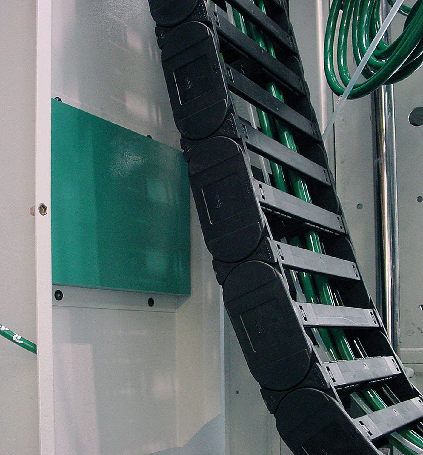 Deutliche Lärm- und Stoßentlastung beweglicher Kabelschleppelemente in Fräsmaschinen durch Einsatz von SLAB Dämpfungsplatten