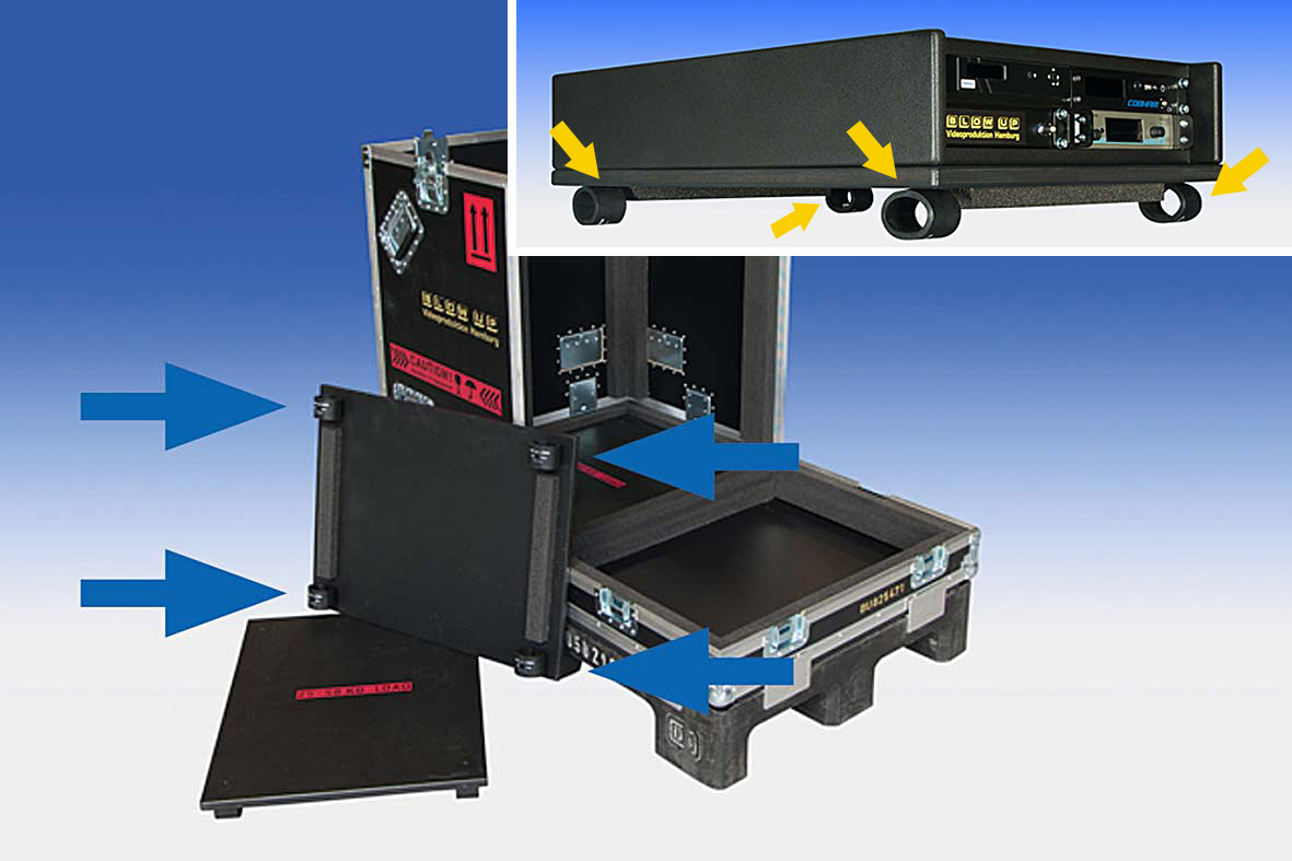Erhöhte Stoßsicherheit durch Dämpfung von Transportkisten für hochwertige Audio- und Videotechnik