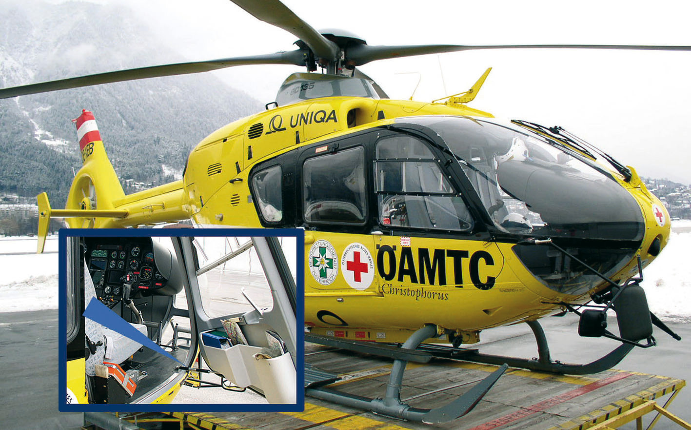 In Rettungshubschraubern vom Typ Airbus EC 135 sind in den Einstiegstüren wartungsfreie, in sich geschlossenen Öffnungs- und Schließsysteme mit Gasfedern von ACE eingebaut. Dort erleichtern sie der Besatzung den schnellen Ein- und Ausstieg und tragen zu erhöhter Sicherheit bei. Die Industrie-Gasdruckfedern GS-19-300 sorgen für eine definierte Einfahrgeschwindigkeit und sicheren Halt im Schloss. Die eingebaute Endlagendämpfung macht ein sanftes Aufsetzen der Tür möglich und schont das wertvolle, leichte Material.