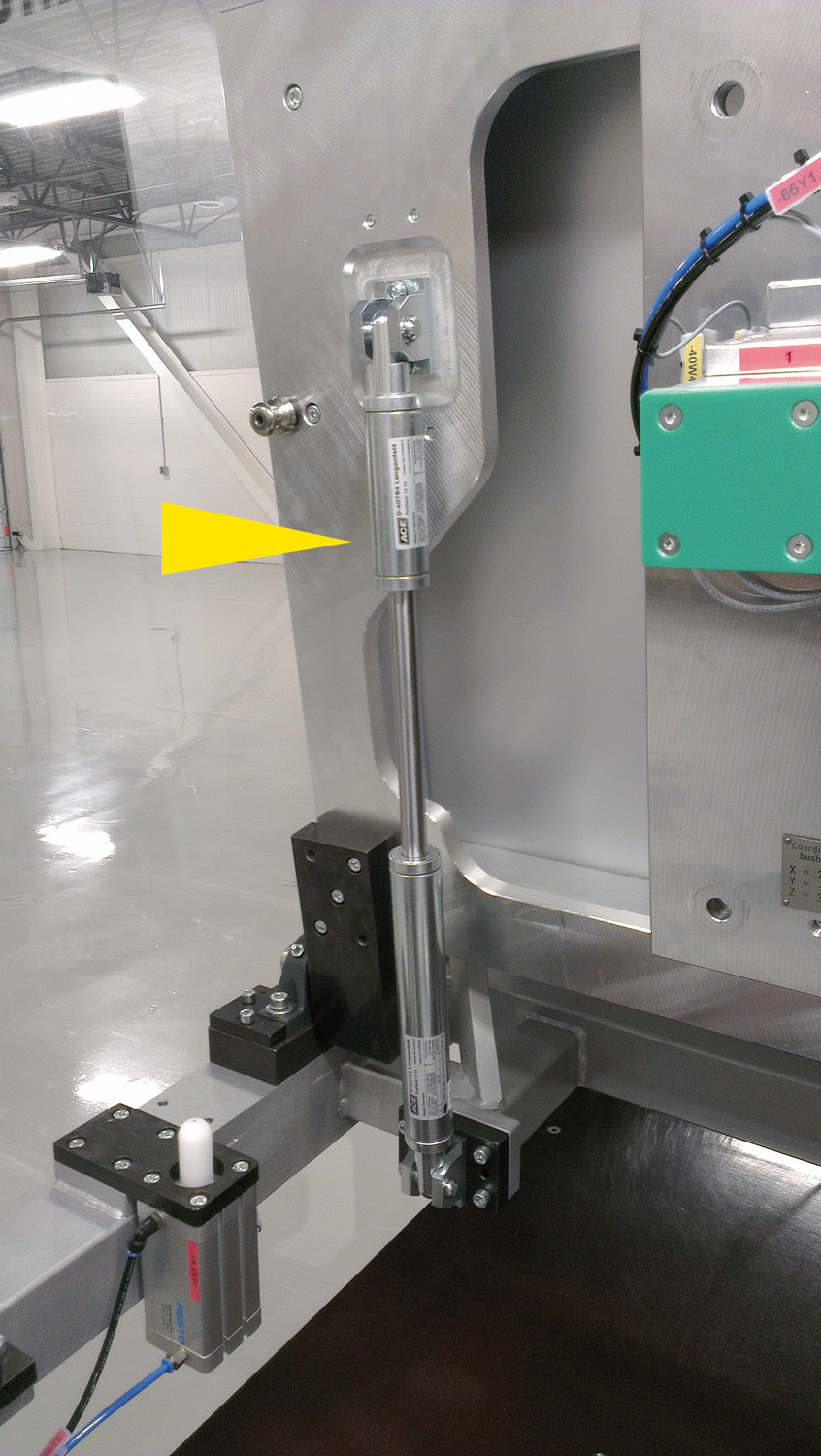Sicherheitsdämpfung für die Lademechanik von Drehmaschinen ACE Strukturdämpfer schützen den integrierten Lader einer innovativen Drehmaschine. Für die Herstellung von Wellen für die Automobil- oder Zulieferindustrie kommen oben am internen Lader TUBUS Strukturdämpfer von ACE zum Einsatz. Sie schützen die Installation, falls der Antrieb durch einen Steuerungs- oder Bedienungsfehler über die Endlage hinausfährt. Die TA98-40 überzeugten die Entwickler auch wegen ihrer langen Lebensdauer. Im Not-Stopp-Fall absorbieren die Dämpfer bis zu 73 % der Energie.