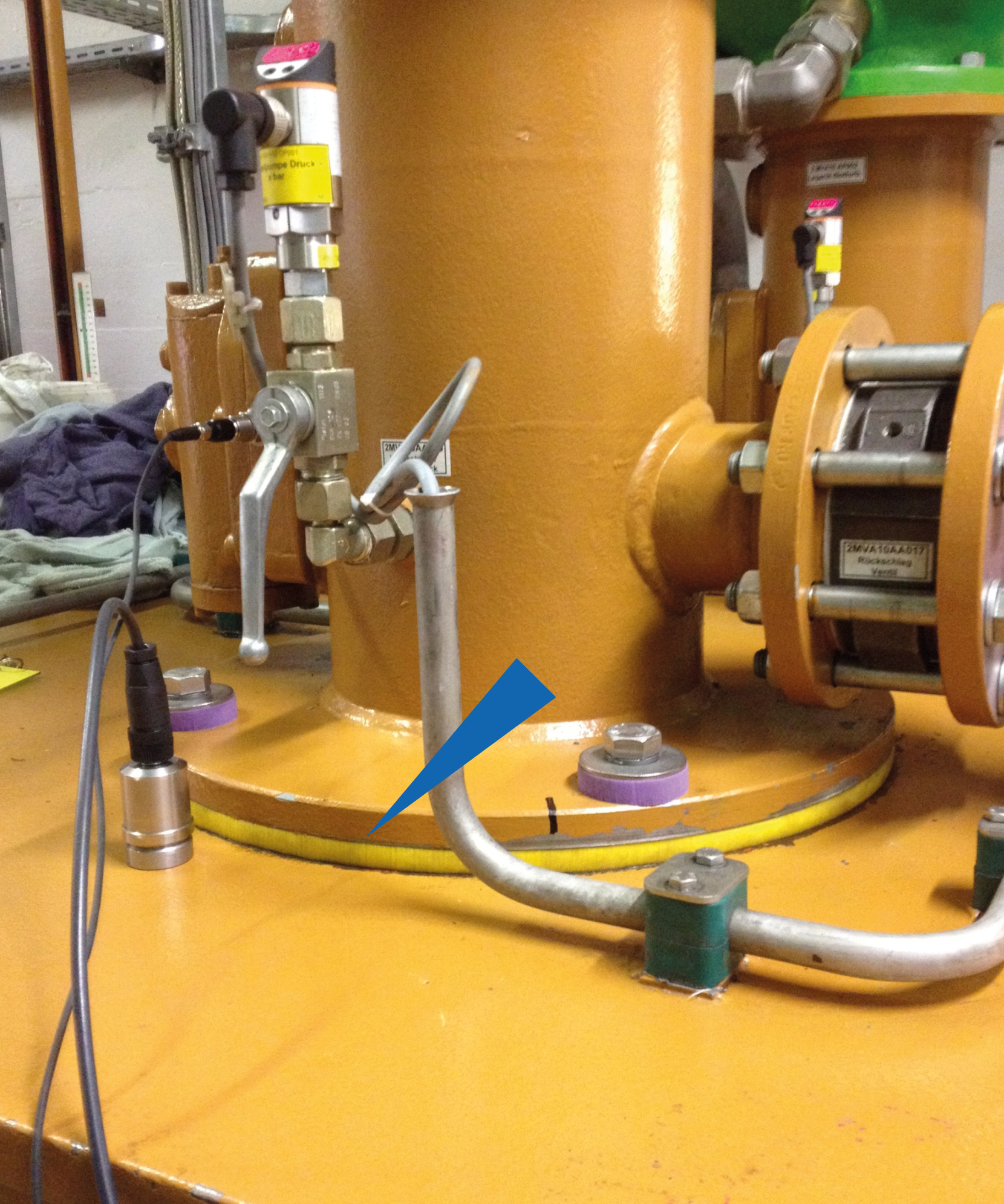 Elastische Verschraubung mittels SLAB Dämpfungsplatten: Körperschallübertragung erfolgreich mit ACE von der Pumpe hin zum darunter liegenden Tank entkoppelt