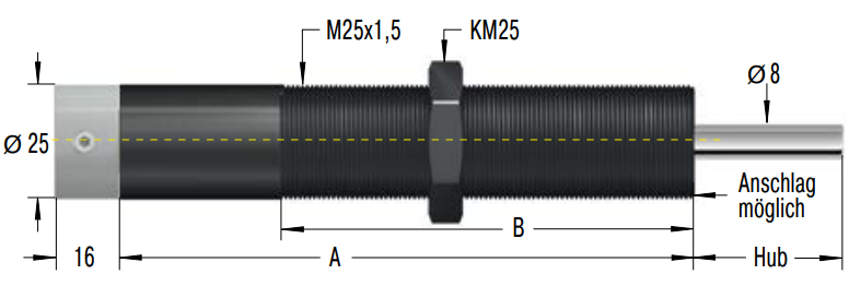 | 2003-31-1 | MA600EUM | Körper mit Gewinde M25 | Entspricht 25mm Hub,Körper mit Gewinde Flexible Befestigungsoptionen : 2 Kontermuttern, verschiedene Montageblöcke/Flansche verfügbar |