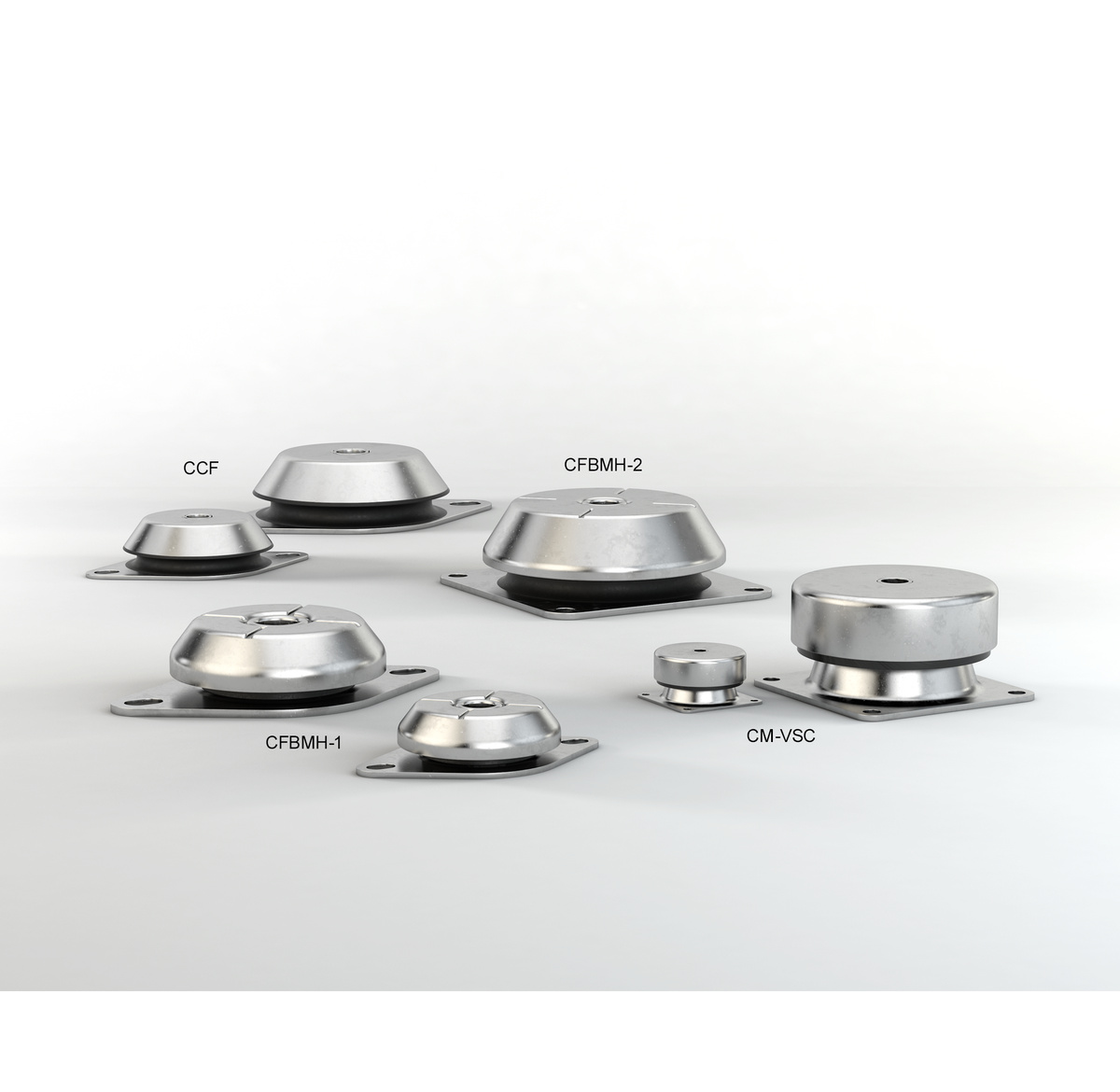 Serienmäßig mit Neopren/Naturkautschuk als Dämpfungsmaterial bestückt, kann man sie auch hoch dämpfend für extreme Temperaturen oder sehr schwere Stöße mit Silikon beziehen. Die Maschinenelemente sind für alle Arten von Belastungen in Schub-, Druck- und Zugrichtung einsetzbar und mit zentrischem Gewinde oder Durchgangsbohrung erhältlich.